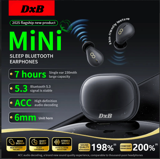 🎧 DxB Mini Sleep Bluetooth Earbuds – Ultra-Comfort, Super Bass, All-Night Wear 🎶