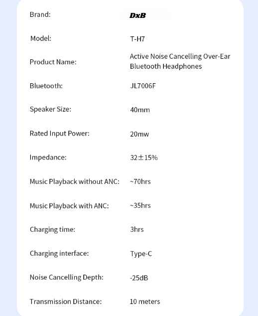 🎧 DxB T-H7 | Noise Cancelling Over-Ear Bluetooth Headphones