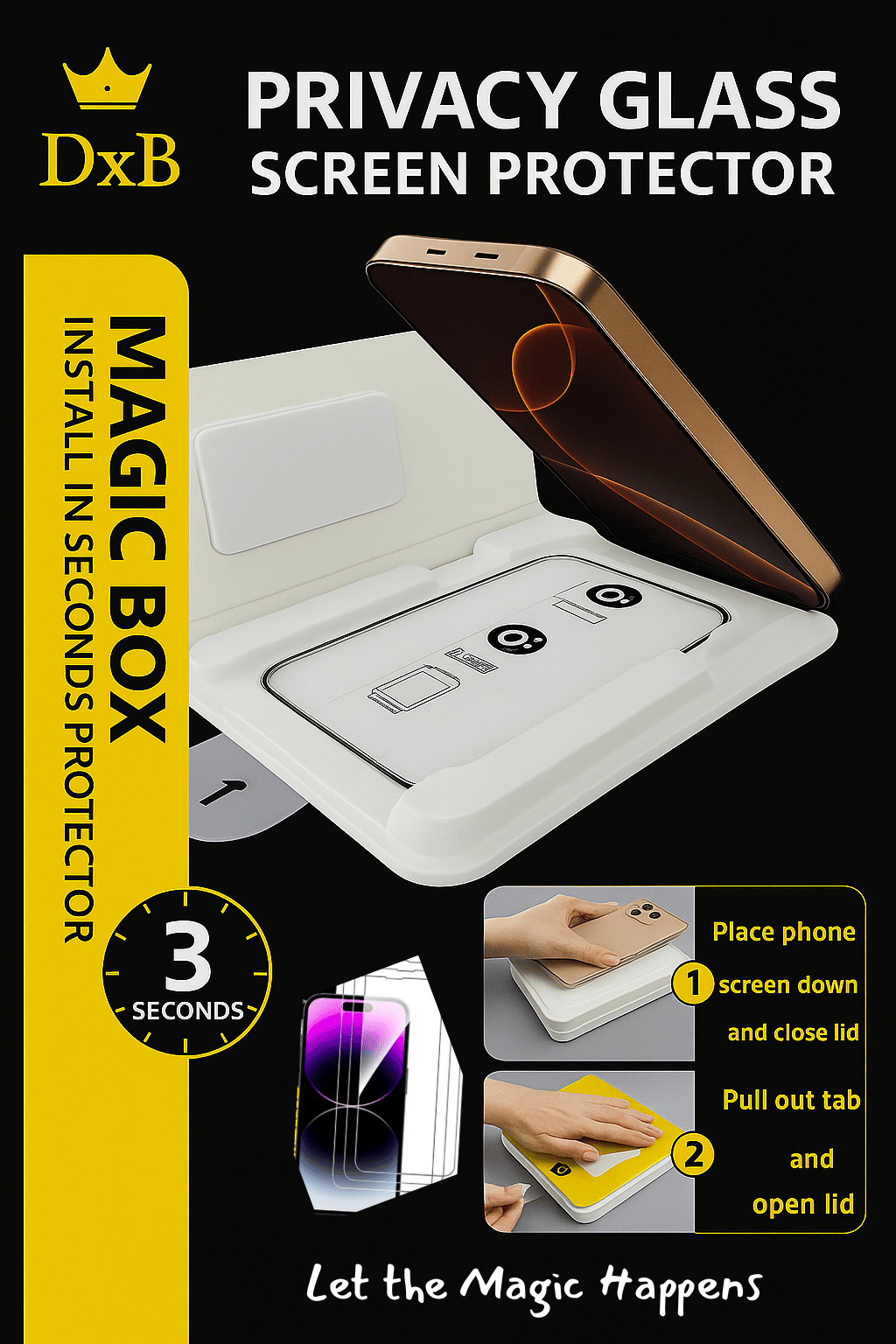 DxB Magic Box™ Screen Protector | Privacy Tempered Glass for iPhone & Samsung
